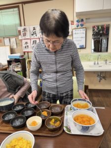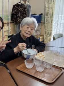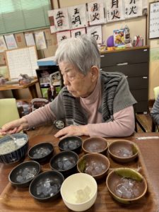 おやつレクであんみつを入居者様と一緒に盛り付けました🌸
